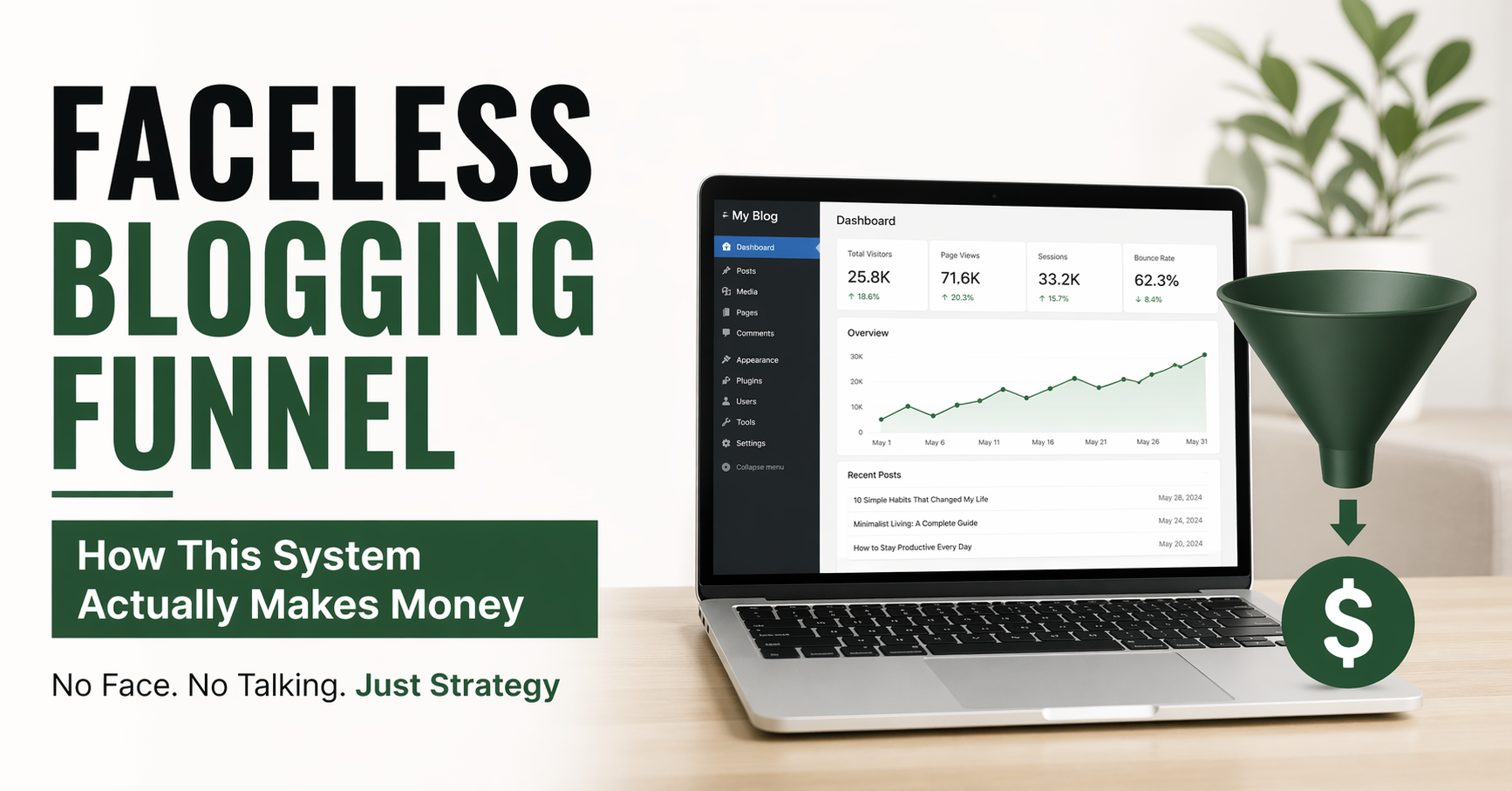 A faceless blogging funnel is one of the simplest ways to build income online without showing your face.